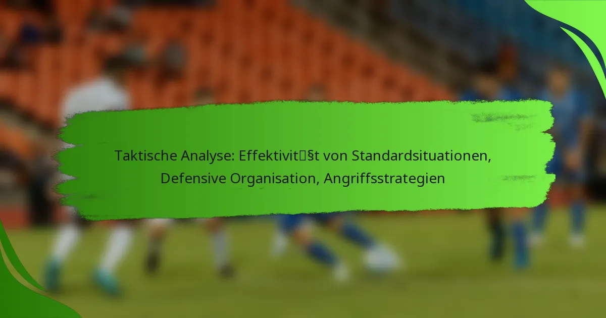 Taktische Analysen im Fußball umfassen drei wesentliche Komponenten: die Effektivität von Standardsituationen, die defensive Organisation und die Angriffsstrategien. Standardsituationen bieten wertvolle Chancen zum Tore schießen, während die defensive Organisation darauf abzielt, Tore durch strukturierte Formationen und Kommunikation zu verhindern. Effektive Angriffsstrategien beinhalten koordinierte Bewegungen und innovative Taktiken, um die Schwächen des Gegners auszunutzen und Torchancen zu schaffen.